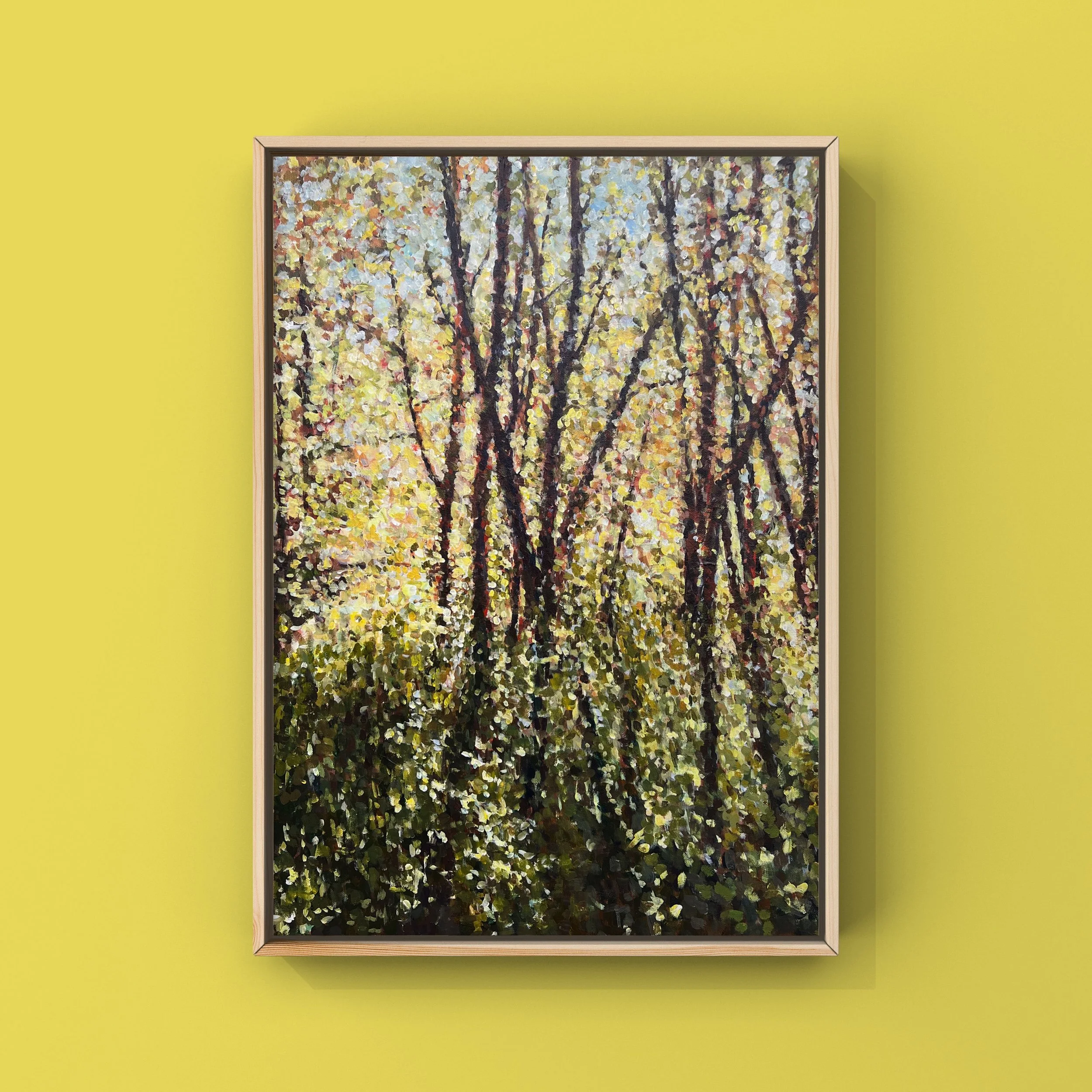 Bare få minutter fra huset finner du en sti. Midt på sommeren bryter sollyset seg gjennom tunne trær som strekker seg opp mot sollyset